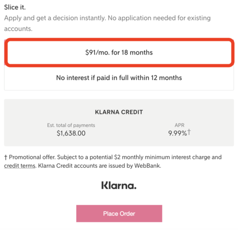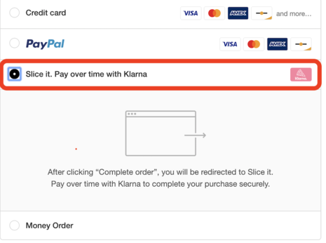 1. At checkout, select Slice it. Pay over time with Klarna as your payment option and continue.