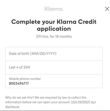 The time frame you are given to pay back your loan is dependent on cart balance. The time frame options that Klarna offers can be: (This is subject to variations. These are examples of past time frame options given)